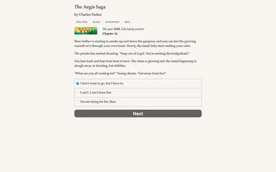 This story is complicated. It gives you alot to think on as your reading it, trying to keep track of who you are and what your doing, and trying to figure out why. TBH I was often frustrated with the choices presented to me as I played. Mostly because those choices were flavor choices only, and obviously refused to give me an option other than the one the story required. I could cheerfully agree to do something, I could grudgingly agree to do something, I could complain about having to do said something, or I could pretend to be